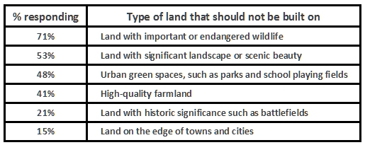 In the final Barker Review of Land Use Planning, a poll commissioned from Ipsos MORI asked ‘What types of land is it most important to protect from development?’. It allowed respondents three choices from six possibilities:
