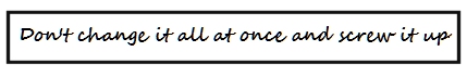 So don’t change it all at once and throw away ‘all that knowledge’.